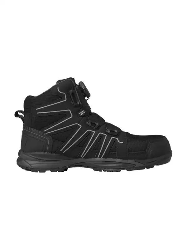 Opis: Zračen material, ki odvaja vlago. TPU zaščita prstov in pete. Odporen na zdrse in vbode. Podplat brez kovine. Odporen na odrgnine, olje in gorivo. BOA® Fit system – L6. V skladu s standardoma CE EN 20345: 2011 S3 SRC in BS EN IEC 61340-4-3:2018 – ESD. Reflektivni detajli. 1 barva.